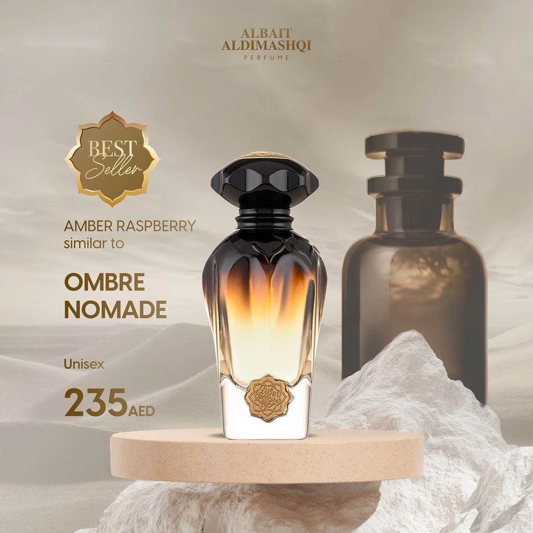 Buy Albait Al dimashqi Ombre Nomade online in India at best price From Aar Fragrances. A special and unique fragrance for both men and women, Albait Aldimashq Amber Raspberry Ombre Nomade Eau De Parfum 75ml combines the rich, woody aromas of Amber and Raspberry for a scent that is luxurious, complex and long-lasting. Just one spray and you will feel the sophistication of this distinguished scent that epitomizes classic luxury.