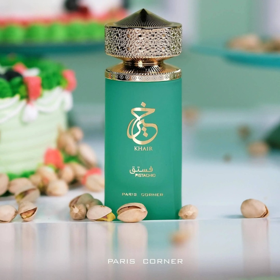 Buy Paris Corner Khair Pistachio Online in India at best price from Aar Fragrances. Khair Pistachio by Paris Corner is a Floral Fruity Gourmand fragrance for women and men. This is a new fragrance. Khair Pistachio was launched in 2023. Top notes are Pistachio, Ice cream, Bergamot, Cardamom, Hazelnut and Rum; middle notes are Pear, Peony, White Peach, Raspberry, Jasmine and Geranium; base notes are Whipped Cream, Marshmallow, Cotton Candy, Tonka Bean and Cedarwood.